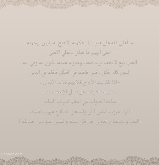 وااااااو وشذاا الابدااااااااع ... الموضوووع كله على بعضه ابدااااع ...الخلفيه والمدخل ,.....خياااال هذي اعجبتني .مرررره ![]() ![]() ![]() ![]() الله يوفقكم ويجزاكم كل خيرويسعدكم....... ![]()