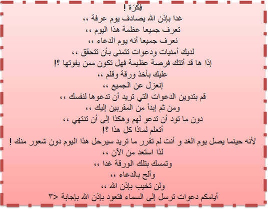 الفكرة حلوة و مذهلة و ان شاء اللة راح استعد من الان ادعي لكيمن صميم قلبي ![]() لكي التقييم يا عسل