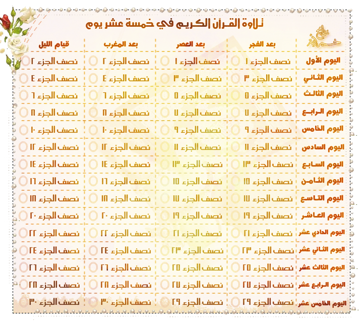 | القرآن،, القران, ختم, جدول, طرق |