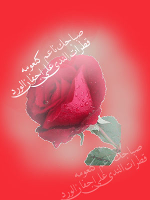 جميل تصميمك رائع جداً كبداية الوردة جميلة لكن الأطراف باللون الأبيض قلل من جمال التصميم + الكلمات رائعه جداً و إختيارك لها مناسب تكرار الكلمة كان جميلاً و إن وضعتي الكلمة الشفافة أسفل الكلمة الواضحة لتبدو و كأنها منعكسة لكان ملفتاً < مجرد فكرة إلا أن ما فعلتيه كان رائعاً فقط لا أكثر أنا متابعه لك و متشوقة لتصميمك الجديد + إن أحتجتي شيء لأساعدك في التصميم أو شرح فأنا على الرحب و السعة