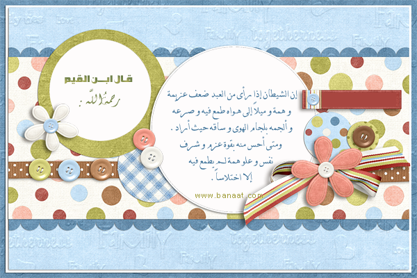 السلام عليكنَّ ورحمة الله وبركاته كيف حالكن يا اخواتي الفاضلات ![]() اليوم صممت تصميم جديد وبسيط الكلمات من درر ابن القيم رحمه الله اتمنى ان تنال اعجابكن ![]() ![]() ![]() المصدر: منتديات بنات دوت كوم lk ]vv hfk hgrdl الموضوع الأصلي : من درر ابن القيم || القسم : بريـشـتـي أعُـبّـر || المصدر : منتديات بنات دوت كوم || كاتبة الموضوع : أمل الغد
