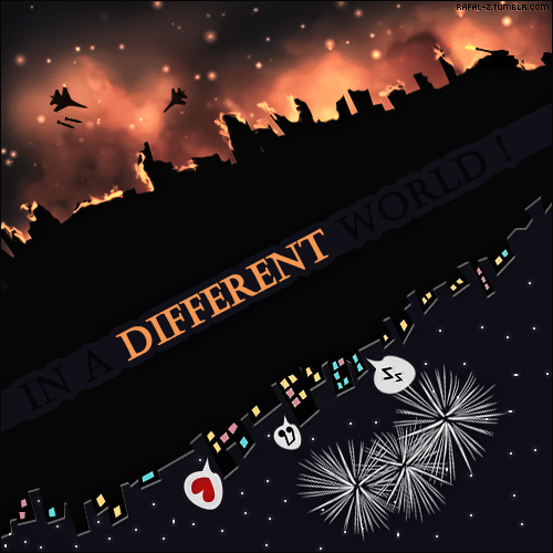 . بسم الله الرحمن الرحيمالسلام عليكم ورحمة الله وبركاته ") تصميم بسيط حاولت أجسّد فيه حال بعض الدول العربية والمسلمة مقارنة بدول أُخرى " سوريا، بورما، فلسطين، مصر، العراق ... " ![]() ^ استخدمت صورة الطيارة + المدفع + الصواريخ + الطراطيع + خامة " خلف المباني فوق " والباقي رسم، بالنسبة للنار على المباني استخدمت أداة الاصبع ") كنت حابة أنزّله وقت العيد بس مااضمن دخولي :( شكراً لكل من مرّت ![]() المصدر: منتديات بنات دوت كوم Diffrent World ! الموضوع الأصلي : Diffrent World ! || القسم : بريـشـتـي أعُـبّـر || المصدر : منتديات بنات دوت كوم || كاتبة الموضوع : * rafal