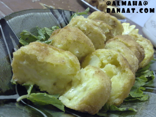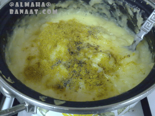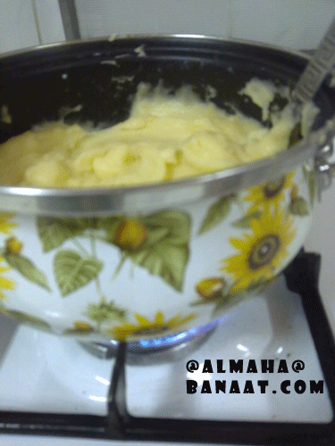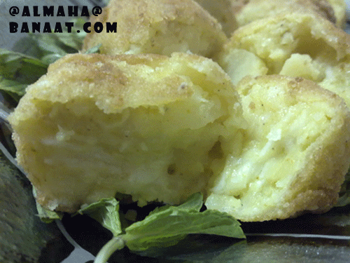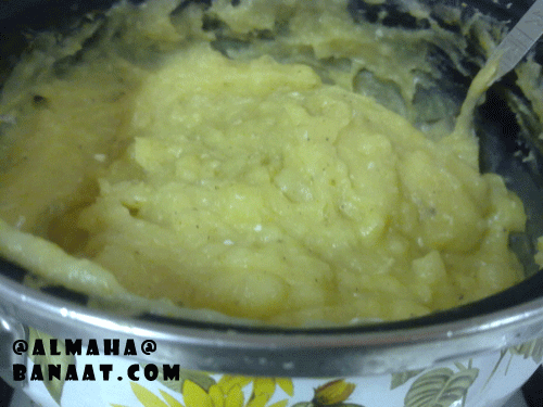 السلام عليكم ورحمة الله وبركاته ![]() صبآحك / مسآءكم كمآتحبون ![]() * * بطاطس بالموزاريلا ** المقادير: 5 حبات بطاطس جبن موزاريلا كوب حليب بهارات ملح فلفل اسود بيضتين طحين " دقيق " بقسماط الطريقه : نقشر البطاطس ونسلقها في ماء مملح ثم نهرسها ( ملح او مآجي ع حسب الرغبه) ![]() نصب فوقهآ كوب الحليب : ![]() نحرك ونضعهآ ع نار هادئه جداً حتى تتشرب كل الحليب : ![]() نرفعها من على النار ونضع عليهآ بيضه واحده + بهارات + فلفل اسود : ![]() نحرك جيداً وندخلهآ الثلاجه حتى تتماسك جيداً : ![]() نخرج الخلطه من الثلاجه : ![]() نعمل كرات صغيره من الخليط ونحشوها بالموزاريلا : ![]() نغمس الكرات بالبيض ثم طحين ثم بيض ثم بقسماط ( حتى لايخرج الجبن اثناء القلي ) : ![]() تقلى حتى تحمر .. ثم تقدم ( قطعت الكرات بالنصف لأنها طلعت عملاقه >< ) .. الشكل النهائي : ![]() ![]() و عليكم بألف عافيه يَ رب ![]() المصدر: منتديات بنات دوت كوم ٠•● f'h's fhgl,.hvdgN ٠•● الموضوع الأصلي : ٠•● بطاطس بالموزاريلآ ٠•● || القسم : مطبخكِ يحكي لنا || المصدر : منتديات بنات دوت كوم || كاتبة الموضوع : @ المها @