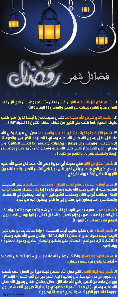 بسم الله الرحمن الرحيم السلام عليكم ورحمة الله وبركاته الحمدلله والصلاة والسلام على اشرف الانبياء والمرسلين سيدنا محمد وعلى آله وصحبه أجمعين.. أما بعد فضائل شهر رمضان تصميم: عين مشتاقة للجنة يسمح النقل والطباعة فالدال على الخير كفاعله المصدر: منتديات بنات دوت كوم tqhzg aiv vlqhk الموضوع الأصلي : فضائل شهر رمضان || القسم : على منابر من نور || المصدر : منتديات بنات دوت كوم || كاتبة الموضوع : عين مشتاقة للجنة