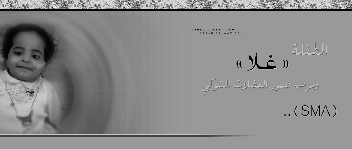 المصدر: منتديات بنات دوت كوم hg'tgm " ygN " ,lvq ql,v hguqgNj hga,;d ( SMA ) >>> الموضوع الأصلي : الطفلة " غلآ " ومرض ضمور العضلآت الشوكي ( SMA ) ... || القسم : الناديَ الرياضي و الصحيَ || المصدر : منتديات بنات دوت كوم || كاتبة الموضوع : فرح فهد .♥